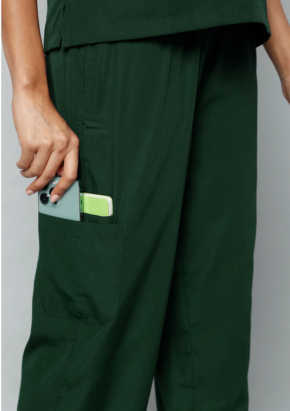 Scrub Tailor medical scrubs cater to all your storage needs. Our scrubs for men include 3 spacious front pockets on the shirt and 4 functional pockets on the pants (2 on the sides and 2 on the knees) for storing medical gear, large enough to accommodate phones. All items in this set are odor-resistant and feature a grosgrain binding.