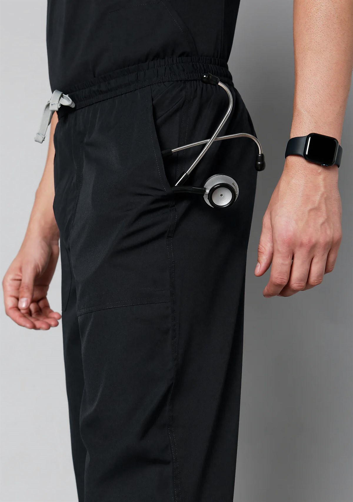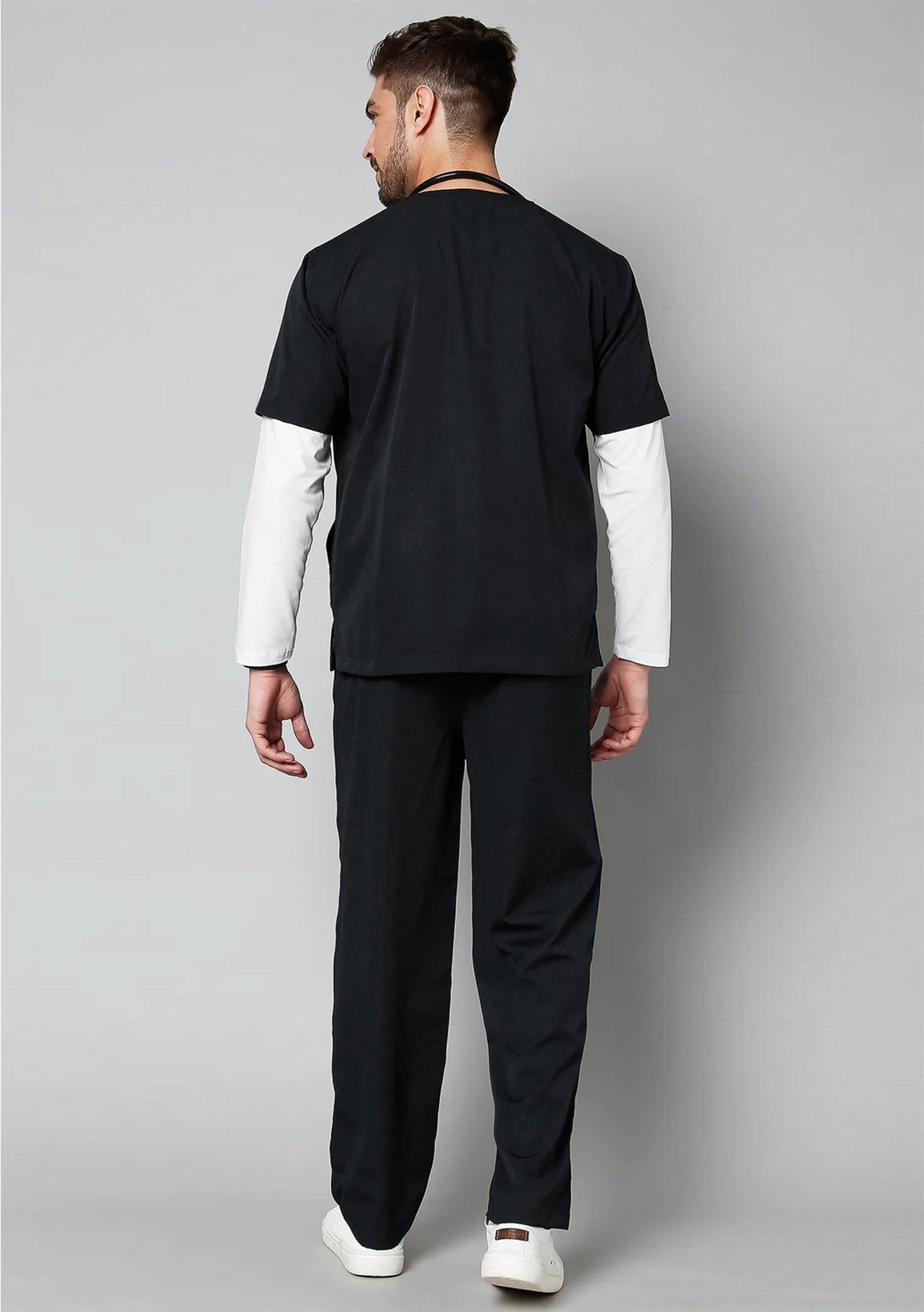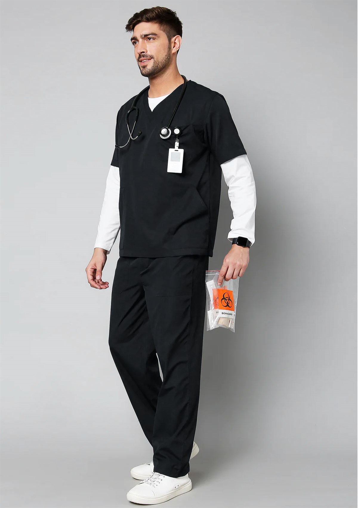 Scrub Tailor medical scrubs cater to all your storage needs. Our scrubs for men include 3 spacious front pockets on the shirt and 4 functional pockets on the pants (2 on the sides and 2 on the knees) for storing medical gear, large enough to accommodate phones. All items in this set are odor-resistant and feature a grosgrain binding.