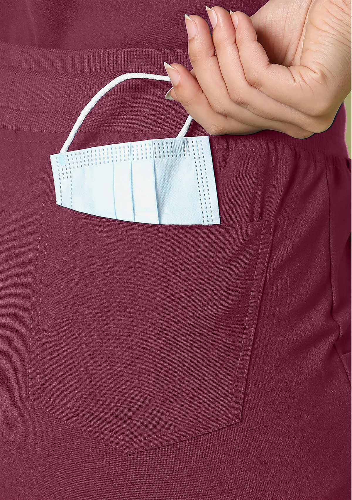 Our modern V-Neck Tops & Pants are tailored for optimal movement, featuring a relaxed hip and a straight-leg fit. The Yoga Jogger/Straight Pants set strikes the ideal balance between stylish modern design and unmatched functionality, perfect for today’s nurses. The scrub tops come with a heat transfer neck label for tagless comfort, front shoulder yokes, front and back princess seams, and 7 roomy pockets.